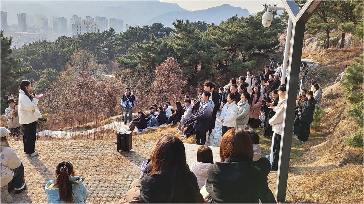 129日,恰逢“一二·九”运动90周年纪念日,韦德bevictor官网“嵙景观”思政课之“一二·九”运动90周年纪念专题课程在校内笔架山开讲。这次课程以“朝乾夕惕,惟真求新,挺膺担当,矢志复兴”为主题,由​韦德bevictor团委书记兼学工办主任易凡主讲,公司辅导员李玲玲、郝俊英、员工党支部及各员工组织代表百余人参加了课程。师生一道徒步笔架山,上了一堂“行走的”沉浸式思政课。