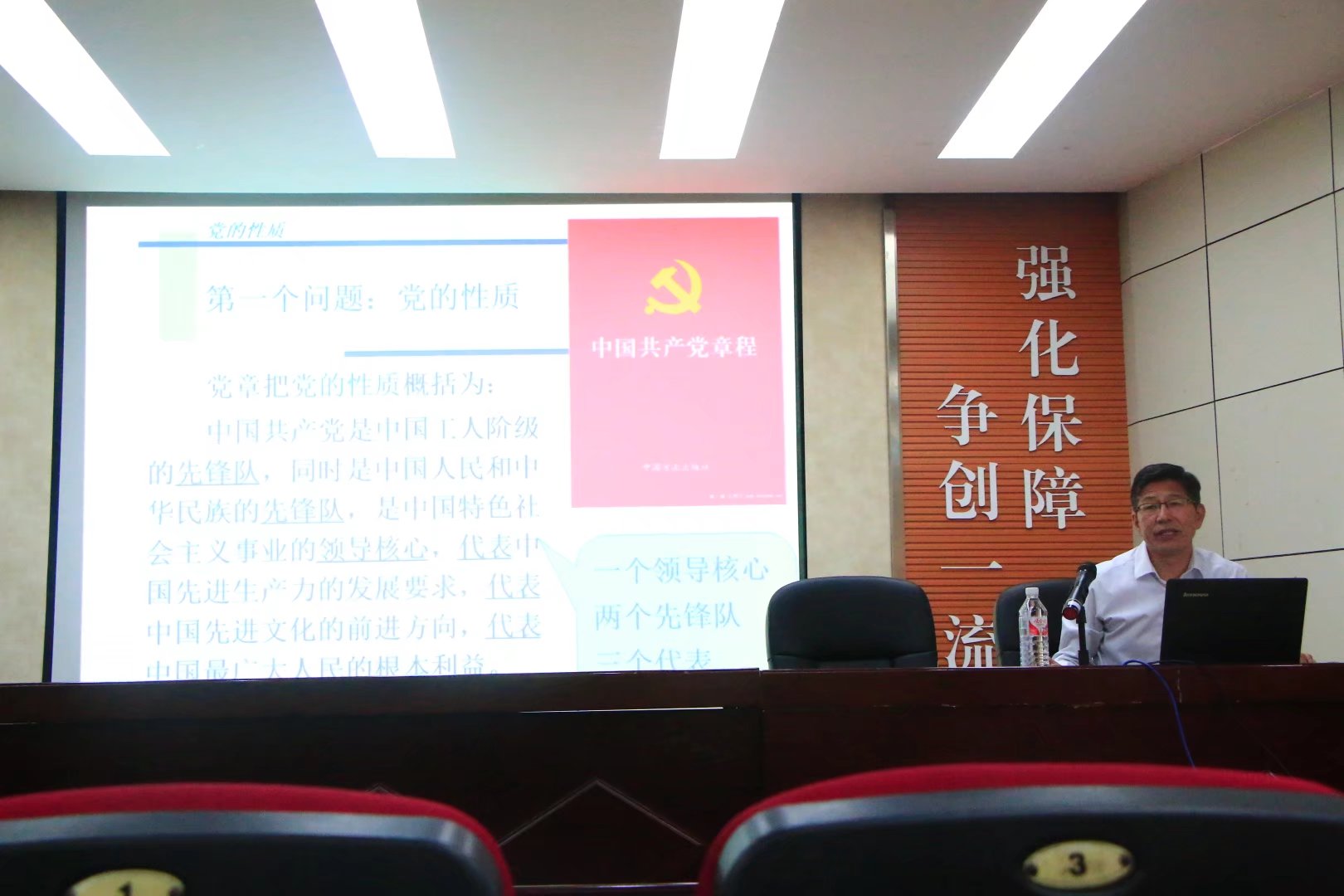 首先,公司党委副书记窦存增在课前作动员讲话,着重强调入党积极分子培训班的重要性并对入党积极分子提出了培训要求。他希望大家端正入党动机,提高党性修养;认真学习党的理论和知识,积极向党组织靠拢;严格遵守培训班纪律,争取早日成为一名合格的共产党员。随后,牟仁刚书记为入党积极分子做党课第一讲——党的性质、指导思想、纲领、宗旨和优良作风。牟书记首先为大家讲解党的性质,把党的性质概括为一个领导核心,两个先锋队,三个代表,着重强调党的阶级性、先进性。随后又详述了党的指导思想的内涵与关系,鼓励学员们认真学习马列主席、毛泽东思想、邓小平理论、“三个代表”重要思想和科学发展观,坚持用党的最新理论武装头脑。紧接着,牟书记以改革开放以来的党的各项改革措施和伟大成就为脉络,为学员们清晰地呈现了党的纲领、根本宗旨以及党的优良作风。最后,牟书记鼓励各位学员要努力学习,勇于实践,不断提高党性修养,以一名共产党员的标准严格要求自己,争取早日加入党组织。