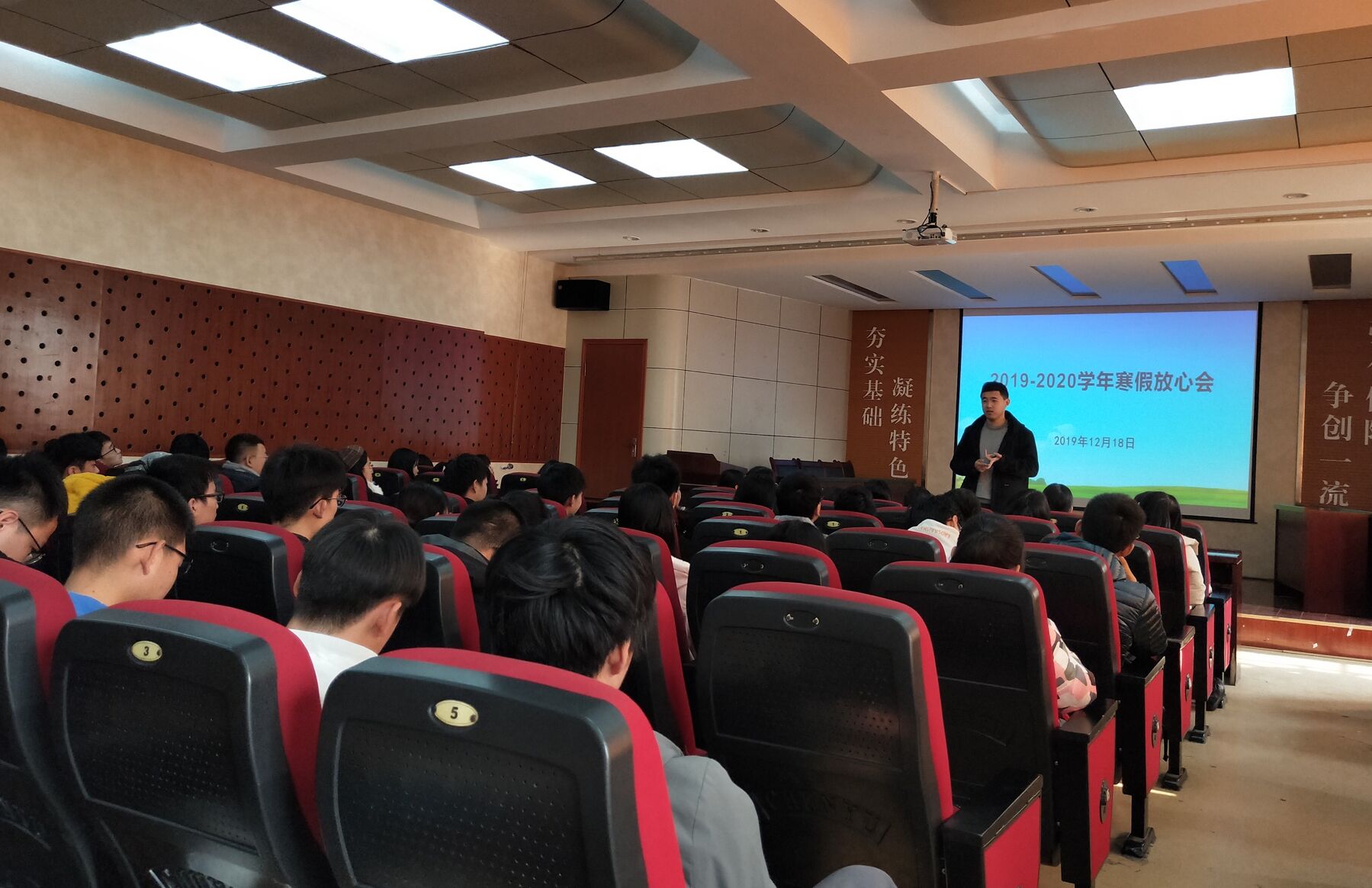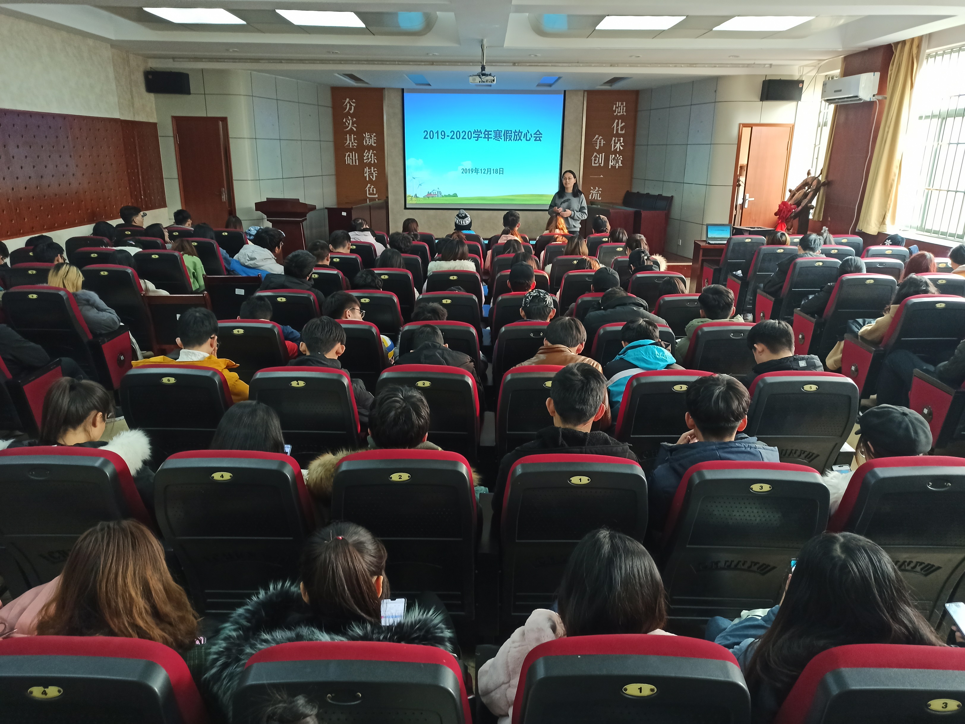 为进一步提高员工寒假安全意识,充实寒假生活,引导大家过一个安全有意义的寒假,公司举办2019-2020学年寒假放心会,全院员工到场参加,各年级辅导员分别主持会议。会上,辅导员们着重强调了人身安全与财产安全问题,结合新闻中的典型案例和身边发生的实例,从水域安全、交通安全、食品安全、人身财产安全等方面向大家普及了寒假安全知识,提醒大家在离校返校途中、寒假在家期间要时刻注意安全问题。随后,老师们说到,要合理安排好寒假时间,制定学习计划,充实自己的假期生活,并提醒同学们留意购票时间,提前购买返校车票。会后,同学们纷纷表示,老师们的寒假安全知识普及和暖心嘱托,让自己感到十分温暖且受益颇多,在即将到来的寒假中,将会进一步强化安全防范意识,科学规划假期生活,过一个安全充实的寒假。(通讯员:徐华坤)