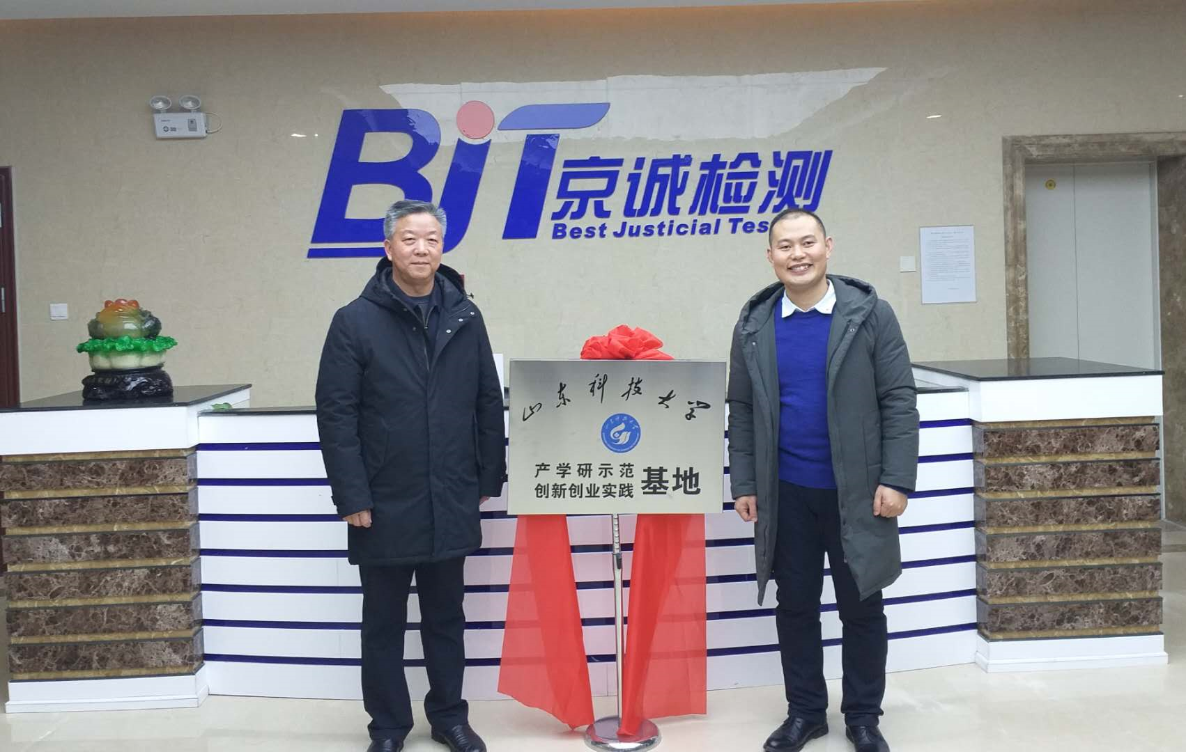 揭牌仪式后,双方本着平等、互助、互利、共赢的原则,就员工就业创业创新实践、人才培养、科技合作、成果转化、公司化运营等方面深层次合作进行了友好磋商,达成多项合作意向。会后,吕宪俊经理等在公司总经理胡国栋陪同下参观了青岛京诚检测科技有限公司,并与公司毕业生进行了亲切交谈。