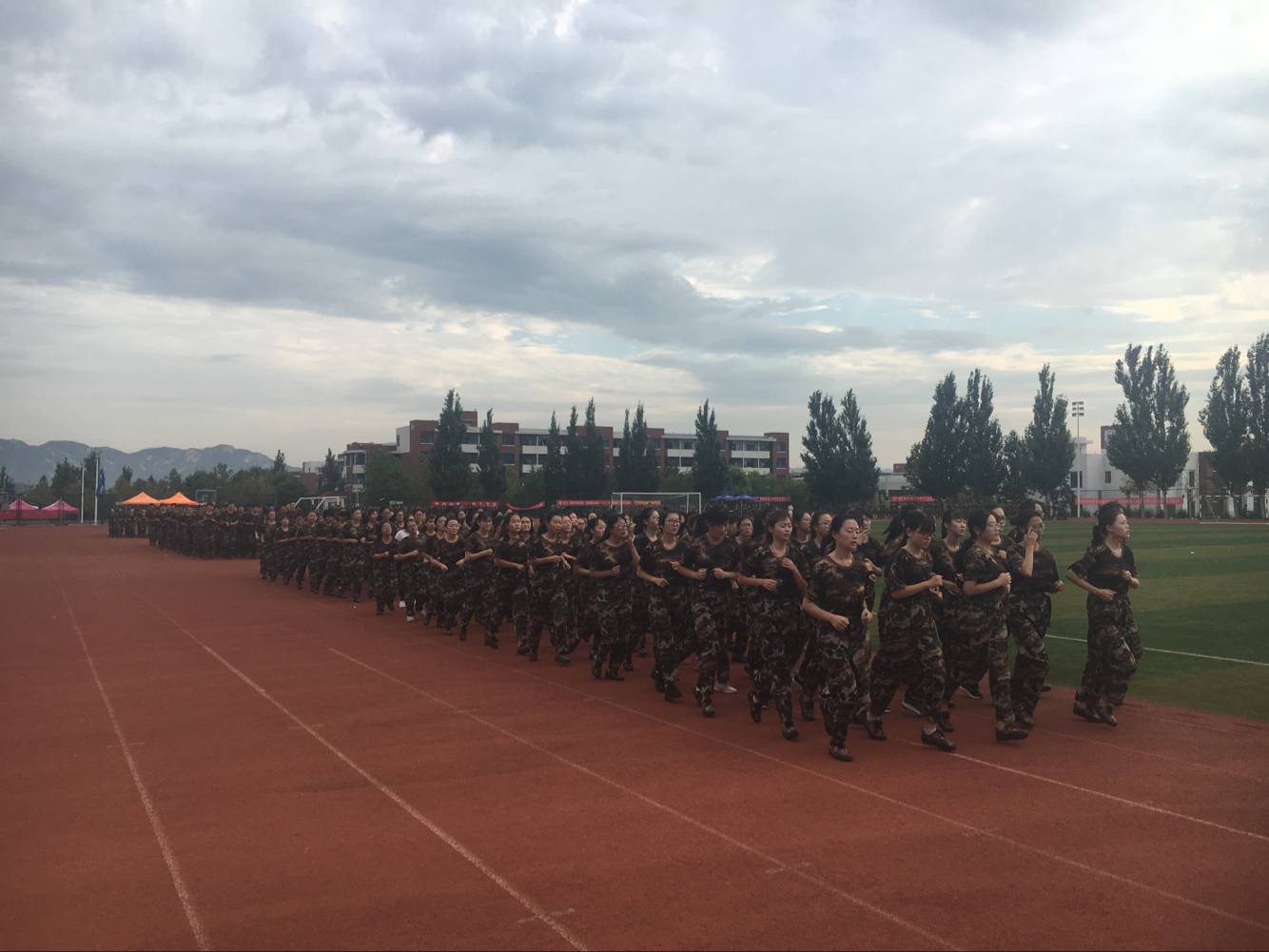 炎炎的烈日和辛苦的训练并没有打击同学们昂扬的斗志。绿茵茵的操场和橄榄绿的迷彩军装相互辉映,同学们显得活力十足。整齐划一的步伐,饱满昂扬的精神,嘹亮铿锵的口号为这个夏末增添了别样的生气。