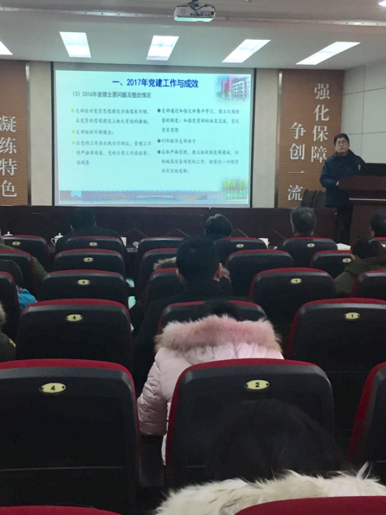 1月11日,公司党委在公司报告厅召开2017年度党支部书记抓党建工作述职评议会,姚庆国副董事长带领统战部吴强部长等督导组成员与会指导。公司党委班子成员,有关部门负责人,党支部书记副书记、系(中心)主任,部分党员干部和群众代表等参加了会议。会议由公司党委书记李垂文主持。