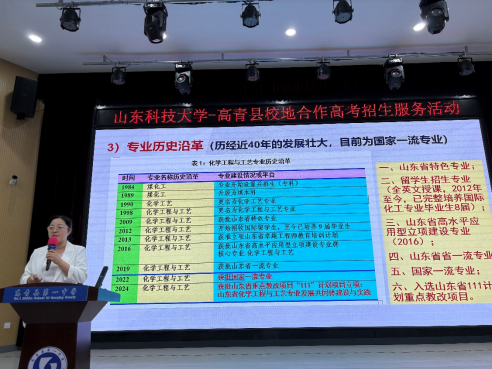 为进一步加强高校与中学的交流合作,为广大考生提供更全面、准确的报考信息,6月27日,教务处副处长兼招生办副主任刘勇、公司党委副书记兼副经理田静带队赴淄博高青一中开展了招生宣讲活动,化工系主任徐冬梅教授参加了本次招生宣传活动。