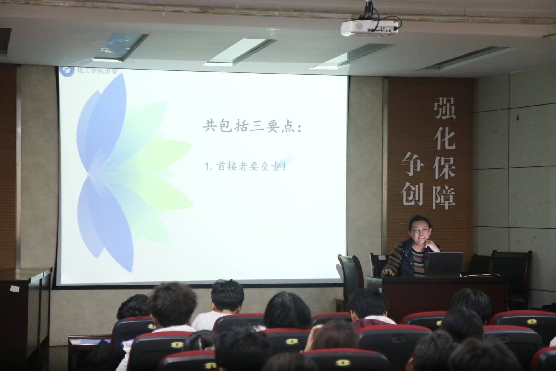 李玲玲老师以“服务他人,成就自我”为主题展开培训,结合具体案例与员工工作场景,系统讲解员工干部应具备的基本素养,并强调“认真从小事开始”,提醒大家养成严谨细致的工作作风。