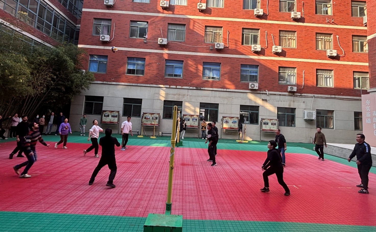 比赛采取三局两胜淘汰赛制,每局先得15分且领先对手至少2分者获胜。各参赛队伍精神饱满、配合默契,场上传球、扣杀、拦网等精彩瞬间不断,展现出公司教职工良好的体育素养和团队协作能力。场下观众热情高涨,加油声、欢呼声此起彼伏,现场气氛热烈活跃。多名外籍博士后踊跃参加,成为一道靓丽的风景线。经过多轮激烈角逐,最终化工队凭借出色的发挥荣获冠军,生工队、机关实验中心联队、应化队分获第二、三、四名。