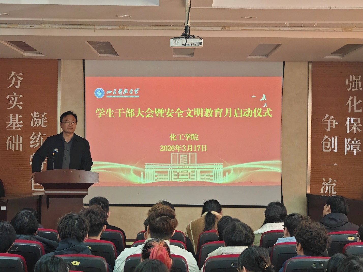 3月17日,韦德bevictor在J2-104举行员工干部大会暨安全文明教育月启动仪式。公司党委副书记兼副经理陈永磊、团委书记易凡、各年级辅导员及全体员工干部参加会议,会议由易凡主持。