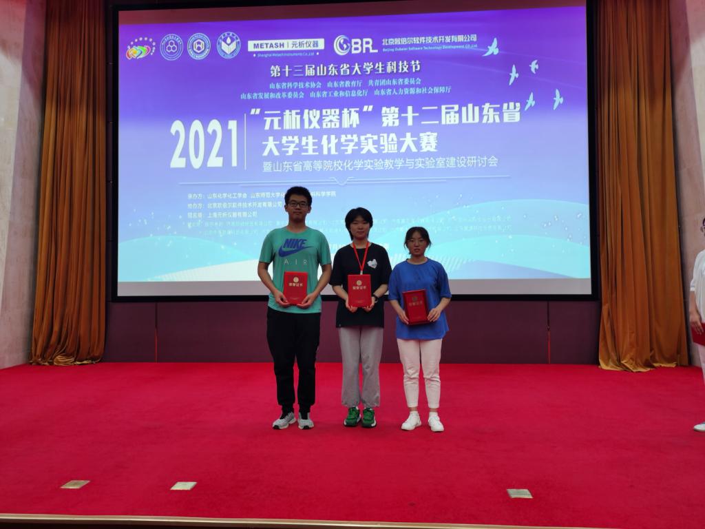 7月19日至22日,“元析仪器杯”第十二届山东省老员工化学实验大赛暨山东省高等院校化学实验教学与实验室建设研讨会在济南举行,公司应用化学专业员工高帆、尚琳卿同学荣获大赛一等奖,高梦悦同学荣获二等奖,刘青云、王鹏、黄永清担任指导教师。