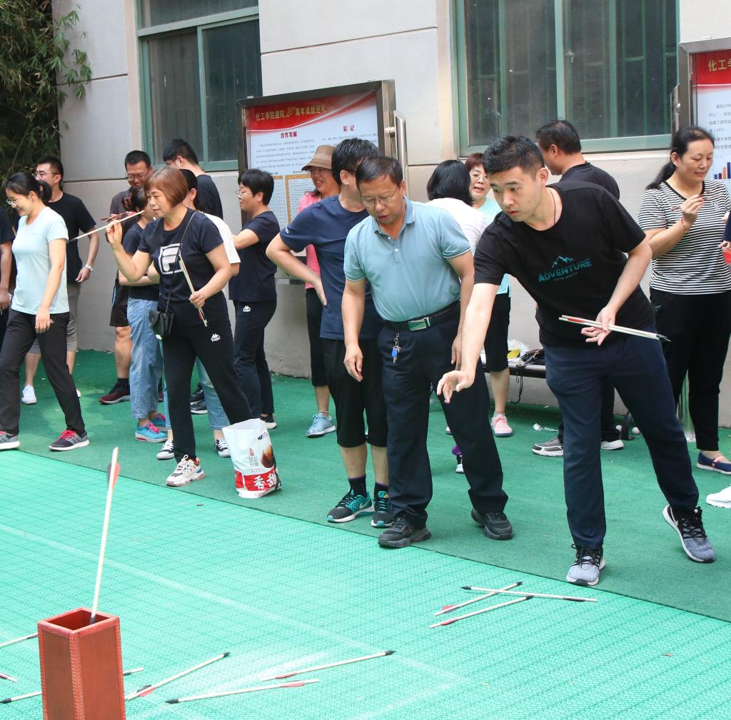 本次趣味运动会共设置投壶、运输小队、运输大队、跳绳4个项目,公司教工根据所在部门、系(中心)分为6支队伍,以集体形式进行比拼。投壶现场,一支支道具箭从手中抛出,每个人都期待着箭入方壶;运输小队项目是用箭夹乒乓球接力,运输大队项目是两人夹气球接力,考验的是平衡能力和团队合作。跳绳作为喜闻乐见的运动项目,老师们积极踊跃参与,一展身手。运动会不但是智慧和体力的角逐,更是团结和协作的比拼。现场参赛教职工兴致盎然、斗志昂扬,现场气氛热烈,掌声笑声不断,大家其乐融融。