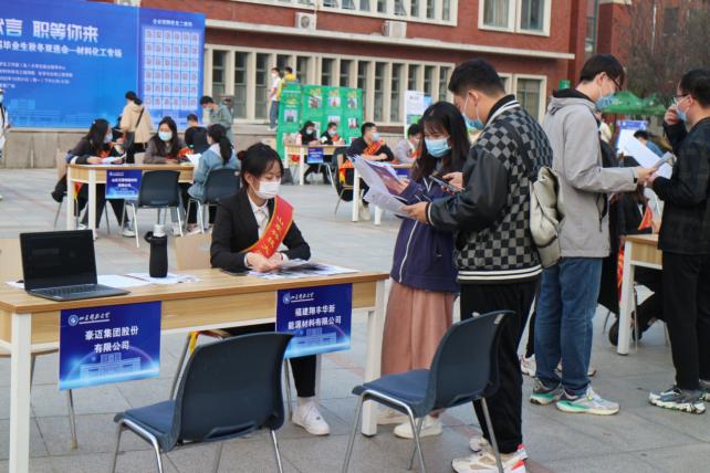 招聘会上33家单位提供的1500余个就业岗位,覆盖化工、材料公司的各个专业,涉及材料,化工,石油,光电等十几个行业。在校员工变身校园大使,帮助用人单位在双选会现场进行招聘宣讲,收取求职简历。