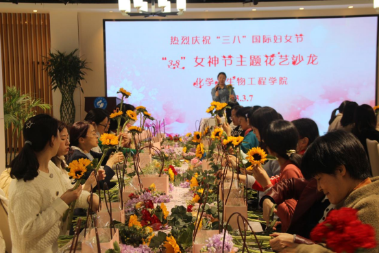 随后,公司工会举办了手提花盒插花花艺沙龙活动。插花前,花艺师介绍了花卉品种、插花审美、插花造型、色彩搭配、鲜花花语等内容。女教工们在花艺师现场示范和指导下,结合个人审美,进行插花创作。插花过程中大家互相交流、互赏花艺,享受自己动手创造美丽的快乐。本次插花活动用花木来抒发女教职工的高雅情怀,以花感人,以花育人,培养了女教职工知美、爱美、会美的美好生活情趣。老师们纷纷表示活动贴心、用心、有品位,这个节日过得太开心太幸福了。