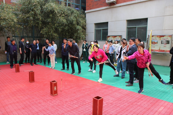 本次趣味运动会共设置投壶、运输小队2个项目,公司教职工们自由组合,5人一队,以团队的形式进行比拼。投壶现场,一支支道具箭从手中抛出,在空中留下一道优美的弧线,大家都期待着箭入方壶。运输小队项目是用箭夹住乒乓球进行接力赛,考验的不仅是平衡能力,更是团队合作。这两个项目充满了趣味,教工们兴致勃勃,竞相踊跃参加,一展身手。运动会不但是智慧和体力的角逐,更是团结和协作的比拼。参赛教职工们兴致盎然、斗志昂扬,现场气氛热烈,掌声笑声不断,其乐融融。