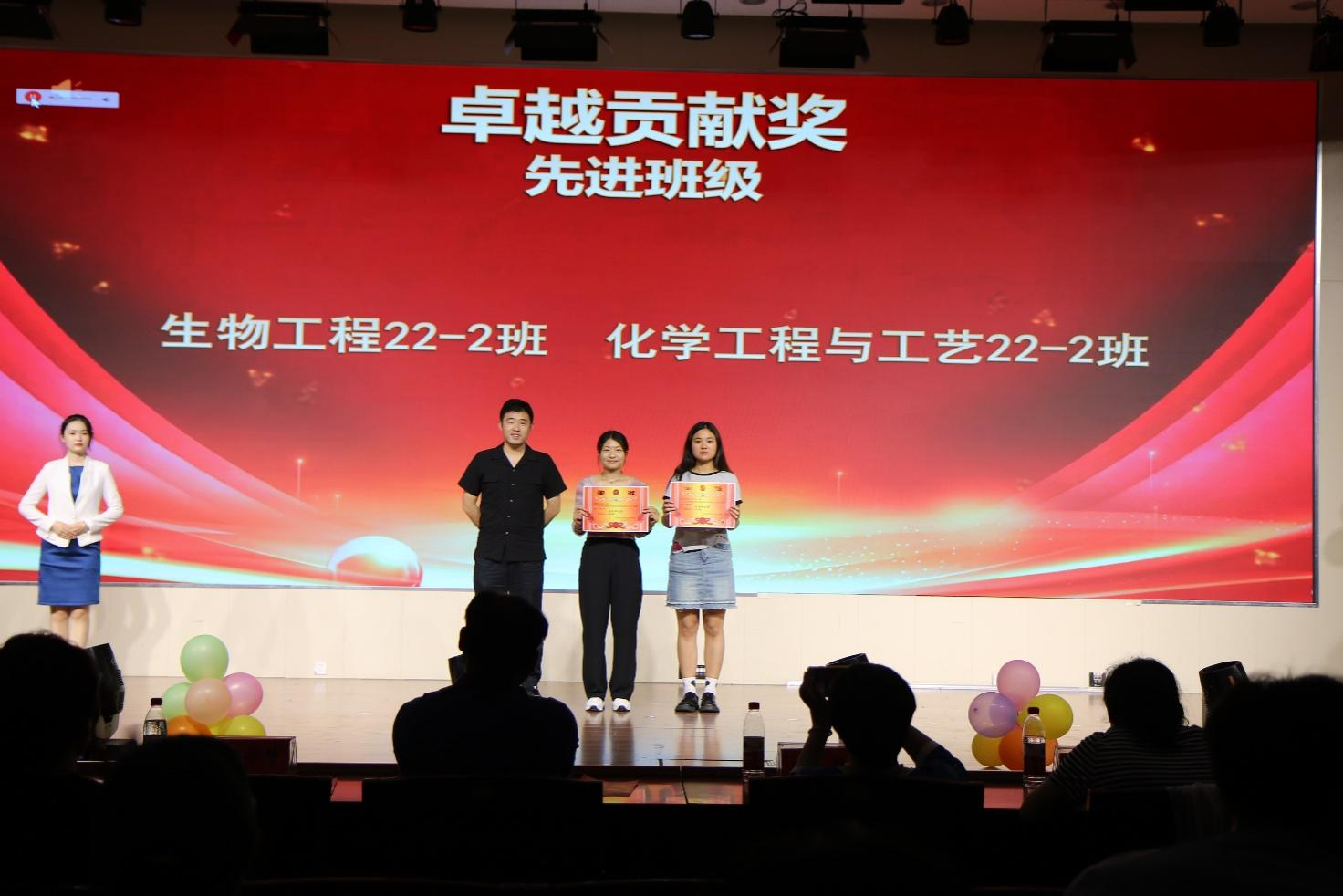会上,嘉宾们向解庆琳、李邦等获得“杰出新人奖”的22名运动员,张震、秦红金等获“运动健将奖”的18名运动员,田相龙、徐梦婷等获“卓越贡献奖——先进个人奖”的10位教练,研究生代表优选计划辅导员牛纪达、员工会主席王奕苏等获得“卓越贡献奖”的幕后英雄,荣获“卓越贡献奖——先进班级奖”的生物工程20222班、化学工程与工艺20222班,荣获校运会“得分王”的马韦同、张雨洁、毕岳洋、朱佳琦以及徐威11名优秀毕业生代表颁奖。