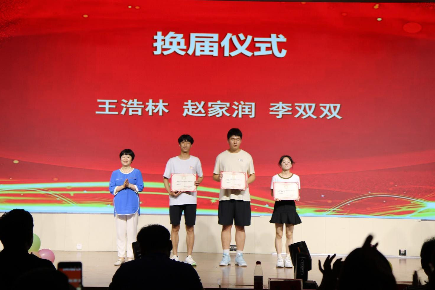 田径队换届仪式上,田静为新任教练王浩林、赵家润、李双双颁发聘书,老教练赵良朔、新教练王浩林进行了小黄衫交接仪式。赵良朔在发言中总结了一年来田径队的努力奋斗和辛苦付出,向取得骄人成绩的田径队队员们表示祝贺,表达了对新一届田径队的期望和信心;王浩林表示将继续传承化工田径队精神,有信心有决心带领田径队取得新的荣誉、铸造新的辉煌。
