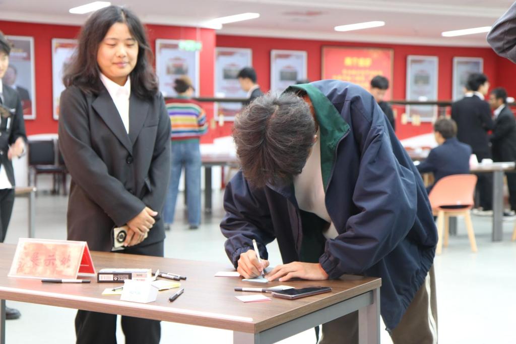 新颖的活动形式、精彩的活动内容,吸引了一批又一批的员工纷至沓来。活动中,同学们抒写自己最喜欢的一本书中的话语、随机抽取并解答书签谜题、参与盲盒抽奖,获得书籍、钥匙扣和校徽等“知识的馈赠”。以书籍为伴,与同学为伍,与员工“对话”,愉快地畅游在知识的海洋里。