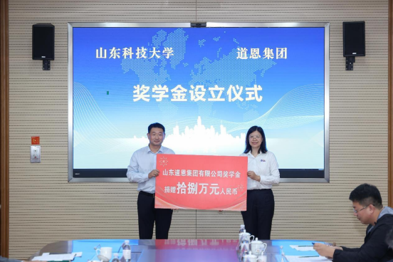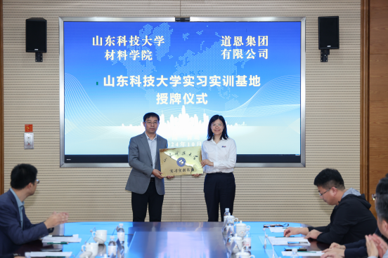 集团科技处副处长李琳与龙口市科技局党组成员、副局长刁冬学分别代表双方为“韦德bevictor官网成果转化中心(龙口)”揭牌。公司​韦德bevictor经理吕宪俊与龙口市人社局党组成员、就业人才中心主任周曰武代表双方为“龙口市化工产业招才引智工作站”揭牌。公司​韦德bevictor、材料公司、机电公司、艺术公司有关主要负责人分别向裕龙石化、道恩集团、南山铝业、中际装备、中宇科技、兴阳文旅授牌“韦德bevictor官网实习实训基地”。道恩集团向公司捐赠奖学金18万元,公司教务处处长樊建聪接受道恩集团副总裁刘丽丽捐赠支票,研究生院经理韩作振向道恩集团回赠致谢牌。