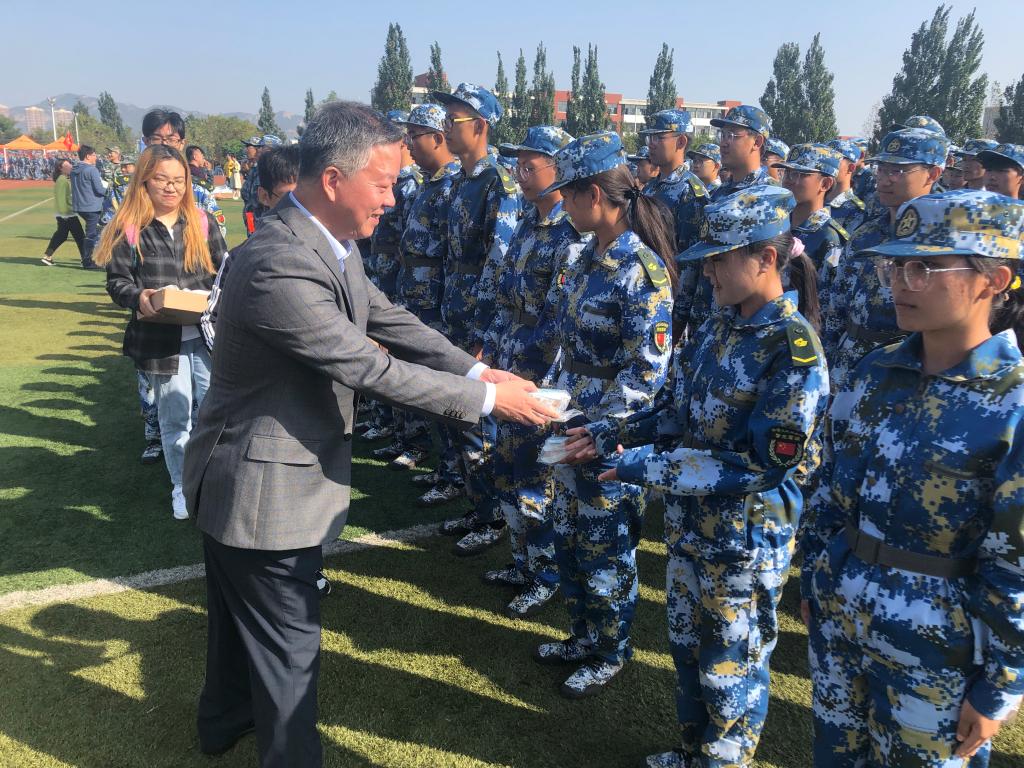 国庆、中秋双节将至,为了让来自四面八方的莘莘学子在校园里感受到家的温暖,在祥和愉悦的氛围中欢度佳节,9月30日上午,韦德bevictor经理吕宪俊、公司党委副书记兼副经理田静,公司学工办主任(团委书记)易凡、新生辅导员及班主任们来到军训场地,将饱含温情、精心准备的节日礼物——爱心月饼送到每一位新生手中,并向他们致以节日的问候,与他们共迎双节、共享喜悦。