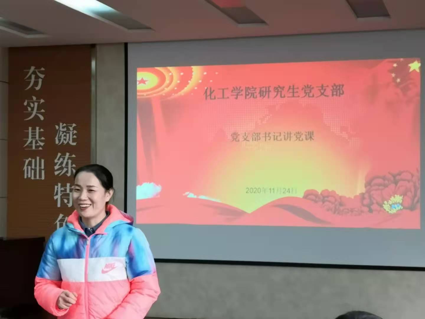 11月24日,韦德bevictor研究生党支部书记易凡在J2-104为支部成员讲党课。党课的主要内容是“深刻理解党的十九届五中全会精神”,韦德bevictor研究生党员和研究生入党积极分子到场聆听党课。课堂分为三个环节,在第一环节,易凡老师就公报的主要内容为大家做了概括介绍,并带领大家学习了党的十九届五中全会会议公报;第二环节中,她和支部成员一道观看了中央宣讲团知名专家对于全会精神的解读视频。随后,课堂进入第三环节,支部党员和入党积极分子就个人对于全会精神的理解展开热烈讨论。其中,支部委员郭彬同学说道:“五中全会精神激励我们明确目标,创新攻坚,作为新时代的研究生,我们要努力学习,为关键核心技术研发做出贡献,这样才能实现高质量发展。”入党积极分子代表王世伟也谈道:“按照五中全会的部署,把我们的青春力量转化为强大的发展动能,强国目标一定能实现。”党课进行了一个小时,在热烈的气氛中结束。