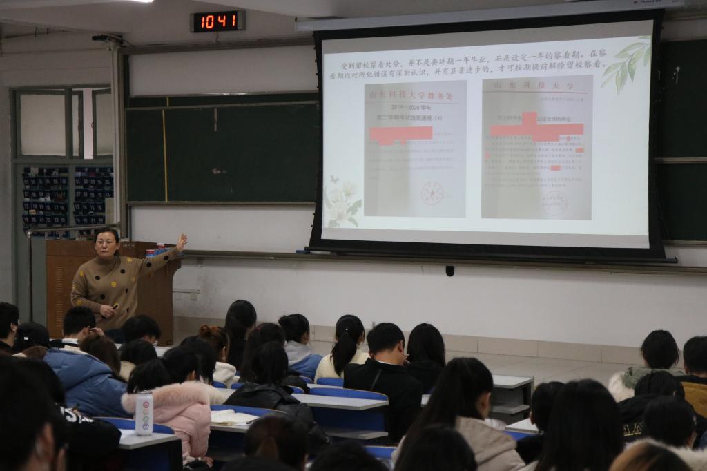 会议分为考风考纪和安全教育两大部分。首先,李老师结合案例向同学们详细讲解了公司关于考试违纪作弊的处理措施及产生的不良后果。大学英语四六级考试和期末考试临近,李老师提醒同学们要掌握科学的备考方法,充分把握复习时间,以积极乐观的心态对待考试,严格遵守国家及公司关于考试纪律的相关规定,始终坚持诚实考试、诚信做人,杜绝违纪作弊现象。