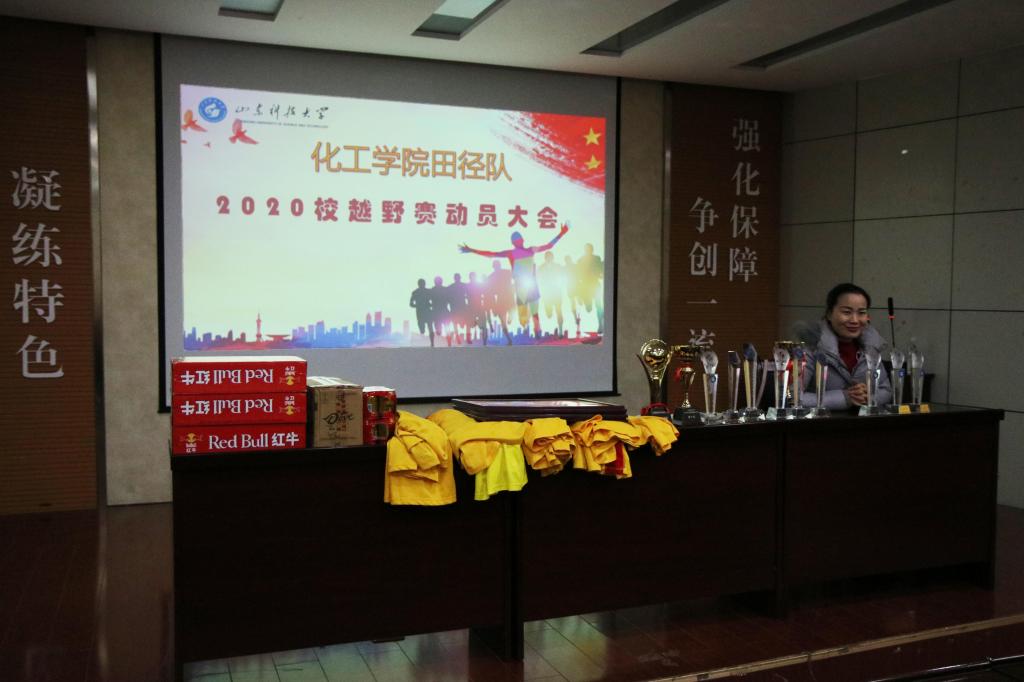 随后,会议进入第二阶段:校越野赛赛前动员组织生活会。易凡老师先利用PPT向同学们介绍了田径队辉煌的九连冠历史荣誉及在田径队精神感召下形成的化工体育文化,并带领队员宣誓。她充分肯定了队员们的刻苦训练,并希望参赛队员在安全第一的前提下发扬体育竞技精神,全力以赴,勇夺佳绩。
