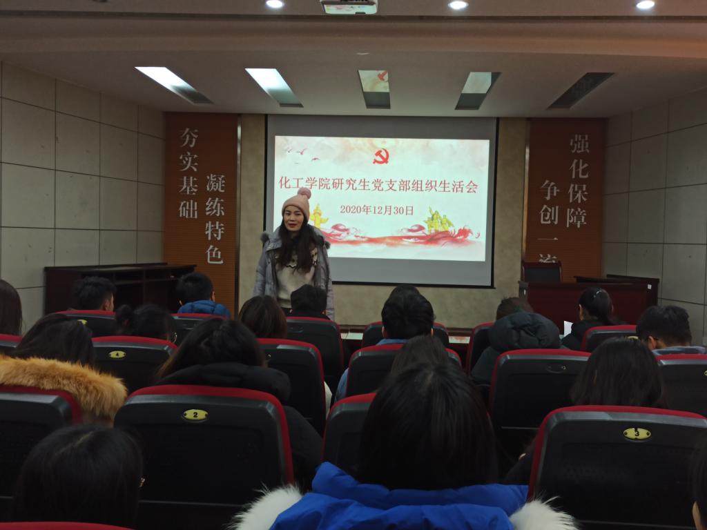 随后,党员同学逐个发言,总结自己的一年收获,分享新一年的计划蓝图,气氛非常热烈。其中,辅导员优选计划党员李淑同志谈道:“2020年,我在疫情宅家的煎熬中迎来了自己的本科毕业季,虽然没吃散伙饭没喝毕业酒是一个遗憾,但同学们都互相祝福各自奔天涯。我幸运地留在了母校,开启我忙碌但充实的辅导员+硕士生涯,对于2021我充满期待,希望咱们国家风调雨顺国泰民安,而我自己,要带好员工做好工作,更要努力学习多做科研,争取向今年一样圆满。”毕业生党员王英明俏皮地谈道:“2020年收获很多,发了论文写了专利,得了奖学金,几乎一夜暴富,2021年希望国家更加繁荣昌盛,政府更加关注民生,2021,我要做“超A小仙女”希望毕业时能找个好工作,绝不当毕业就失业的可悲女青年!”研二的党员刘帅也发言说道“2020年国家遇难克难,向前发展,我个人最大的收获是11月24日加入了中国共产党,对于2021年,我希望自己能牢记入党誓词,用行动去诠释“为人民服务”的宗旨,用努力去践行自己的入党誓词。”