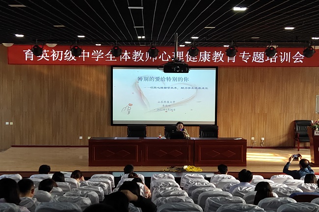 应青岛西海岸新区育英初级中学的邀请,5月20日下午,公司辅导员、校老员工心理健康教育中心咨询师李玲玲走进育英初级中学,为全校近百名教师做了以“特别的爱给特别的你”为主题的心理健康教育讲座。
