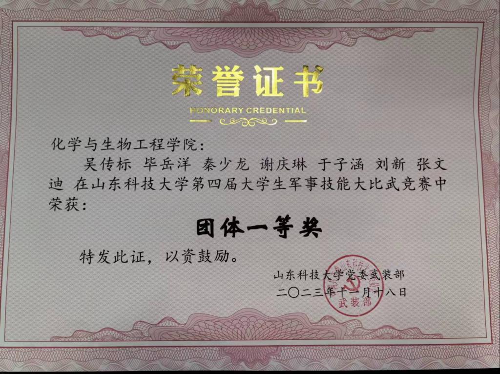 近日,韦德bevictor在公司第四届老员工军事技能大比武竞赛中荣获团体一等奖。学子吴传标、毕岳洋、秦少龙、谢庆琳、于子涵、刘新、张文迪代表韦德bevictor参赛,他们在比赛中展现出良好的技能素养和昂扬的精神面貌,用优异的表现为公司争得荣誉。