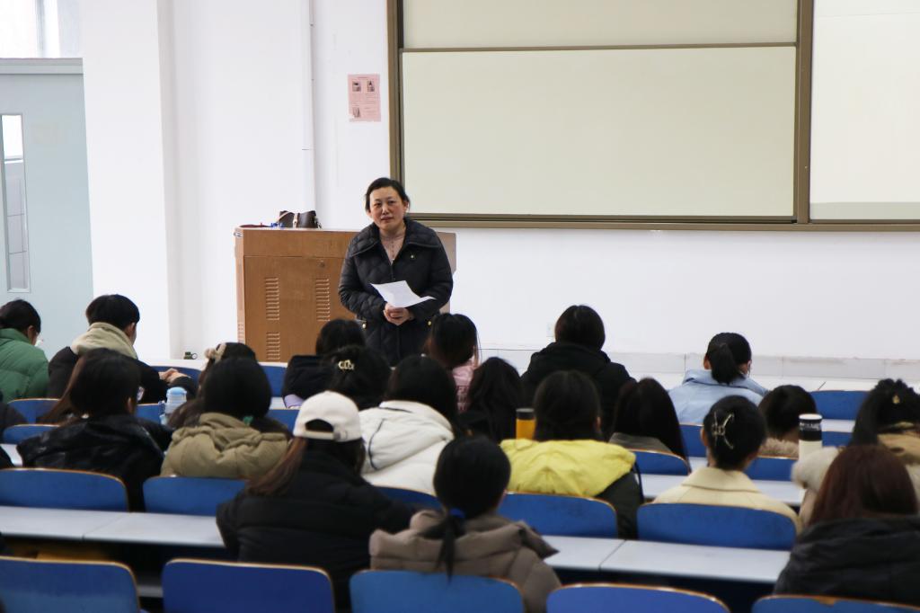 会议伊始,李玲玲对同学们致以新年的问候,同时提醒同学们尽快调整状态,投入新学期的校园生活。随后,她对同学们上一学期的学习、纪律、宿舍卫生及安全等情况进行总结,并提出新学期的要求。她强调,大三下学期是老员工活中的关键学期,同学们应该提升自身执行力,养成良好的学习习惯。随后,李玲玲结合今年考研初试成绩情况,详细讲解了大学毕业后不同的去向选择。她指出,大三学年是同学们人生规划的关键时刻,同学们需要认真思考自己的兴趣、能力和目标,制定出适合自己的未来规划。最后,李玲玲结合真实案例,从电信诈骗、宿舍安全等方面重点强调了校园安全问题,并带领同学们共同观看了安全警示片。