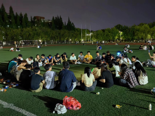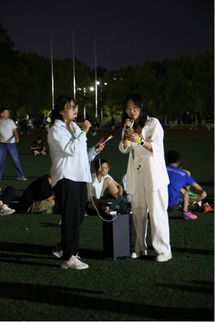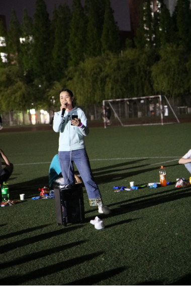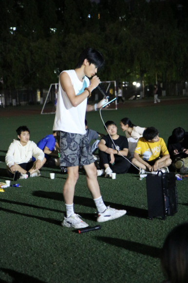 队员们席地而坐,在草坪上围成一个圈,把中心位置作为舞台。团支书王浩林在简短的致辞中谈到:2023-2024赛季已经结束,不管是冬季越野赛的双冠,还是校运会的五冠,所有的成绩是都是公司党委领导田径队当团支部所有队员共同努力的结果,现在起,我们要继续以昂扬的斗志和饱满的热情,同心同力,接续奋斗,在即将到来的2024-2025赛季,迎接新挑战,开启新征程。接着,他宣布欢歌会开始。音乐响起,大家争相演唱。优美的歌声,一首接着一首,在夜空中飘荡,遇到耳熟能详的歌曲更是此唱彼和。