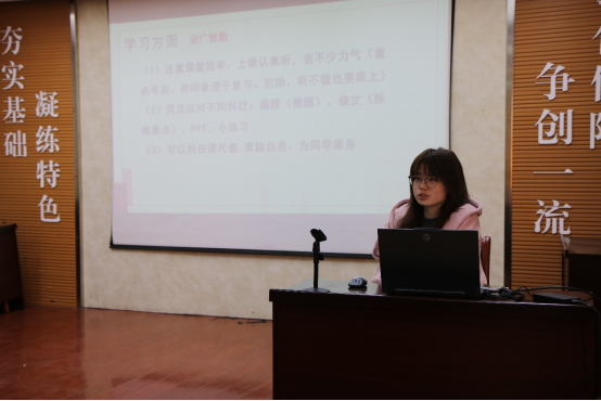 为充分发挥榜样员工的引领与激励奋进作用,响应“星火计划”励志宣讲月活动。3月16日,“聚合英才,榜样领航”宣讲活动第五讲。本次宣讲会由励志奖学金获得者生物制药22-2班周盈盈担任主讲。宣讲过程中,周盈盈针对日常学习和科研竞赛两个方面,分享了自己的经验并给出实用建议。在课堂效率、科目应对方法等方面,她指出要注重课堂效率,紧跟教师节奏,并灵活应对文理科目差异,善用PPT和小练习巩固知识。谈到科研竞赛,周盈盈提出“多问、主动、坚持”三大原则:其一,多向学长学姐请教课题组选择、导师联系及团队组建经验;其二,主动与教师沟通,避免被动等待;其三,坚持认真投入,不惧短期无果,“长期积累终将开花结果”。此外,宣讲特别指出了老员工自我认知与心态调整问题。周盈盈提出“认识自己”是关键,需明确自身定位与目标;同时强调“别怕付出无果”,鼓励员工以积极心态面对挑战,在成长旅程中实现自洽。本次宣讲会为同学们在学习方法、科研竞赛参与以及个人心态建设等多方面提供了极具价值的指引,不仅帮助同学们解决了实际学习和竞赛中的困惑,还引导大家重视自我认知和心态调整。(报道:李颖浩)