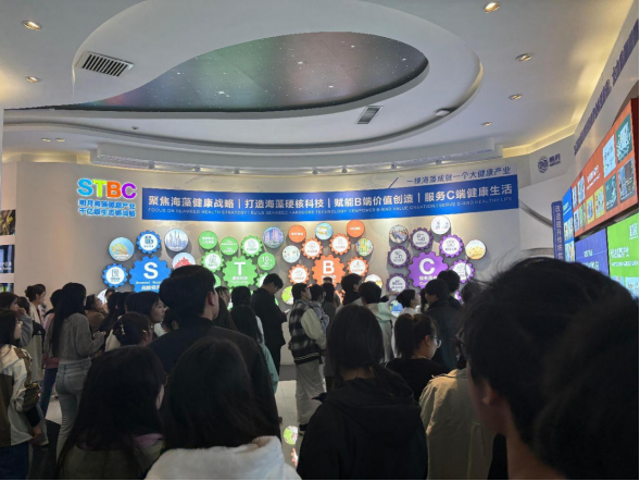 同学们先后参观了明月海藻科技馆,聚大洋海洋生物医药科技园,东海药业研发实验室、微医馆等。在现场,企业技术人员通过详细讲解,使同学们了解到新药的研发流程、生产工艺及数字化管理模式。企业高管、HR与学子们面对面交流,围绕医药行业趋势、岗位能力需求、职业成长路径等话题展开深度对话,同步介绍了企业实习、校招岗位及新区人才政策,优秀学子有机会获得企业优先录用推荐,点燃学子留青发展的热情。