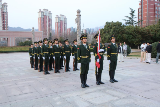 在庄严肃穆的气氛中,国旗护卫队迈着铿锵有力的步伐护卫国旗入场。随着《义勇军进行曲》激昂奏响,五星红旗冉冉升起,全体师生齐声高唱国歌,目光追随着国旗升至顶端。晨光中,鲜艳的旗帜与青春的面庞交相辉映,构成校园里最动人的风景。