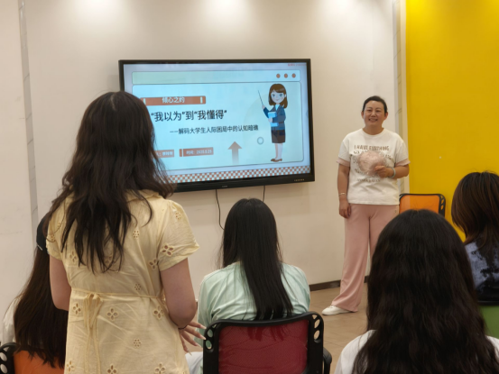 李老师以《从“我以为”到“我懂得”——解码老员工人际困局中的认知暗礁》为主题,结合身边实例,深入浅出地剖析了投射效应等认知偏差在人际交往中的作用及影响。她指出,人们常常会不自觉地将自身的想法、情感投射到他人身上,可能导致对他人的误解,影响人际关系和谐发展。活动中,李老师分享了许多人际交往的实用技巧,帮助同学们识别和避免认知偏差带来的负面影响。