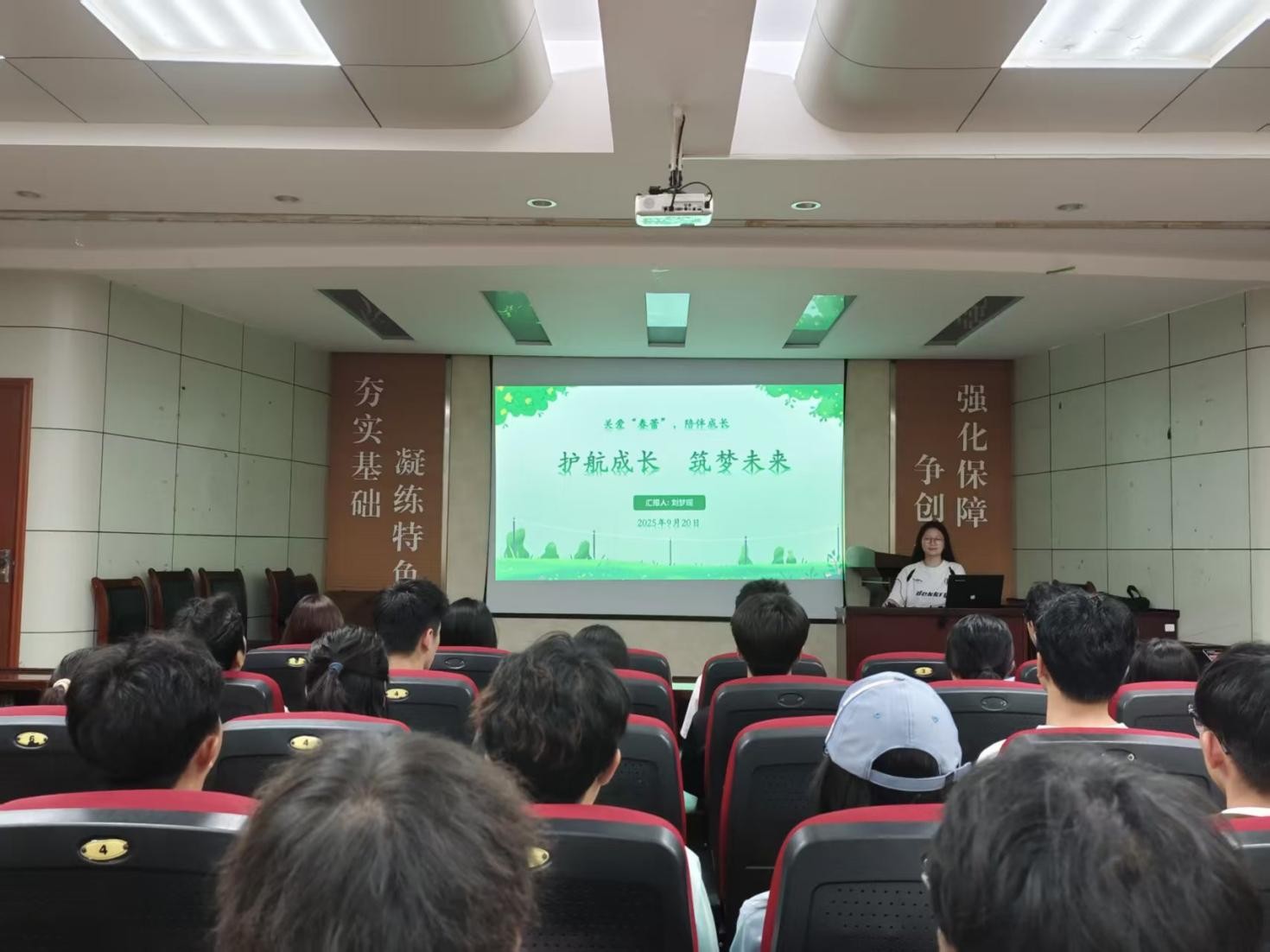 2025年9月20日,韦德bevictor“关爱‘春蕾’,陪伴成长”主题团课在J2-104开班,作为该系列主题团课的第一讲,此次课程的主题是“护航成长,筑梦未来”,由“护蕾”志愿者刘梦瑶主讲,全体员工会成员参加。