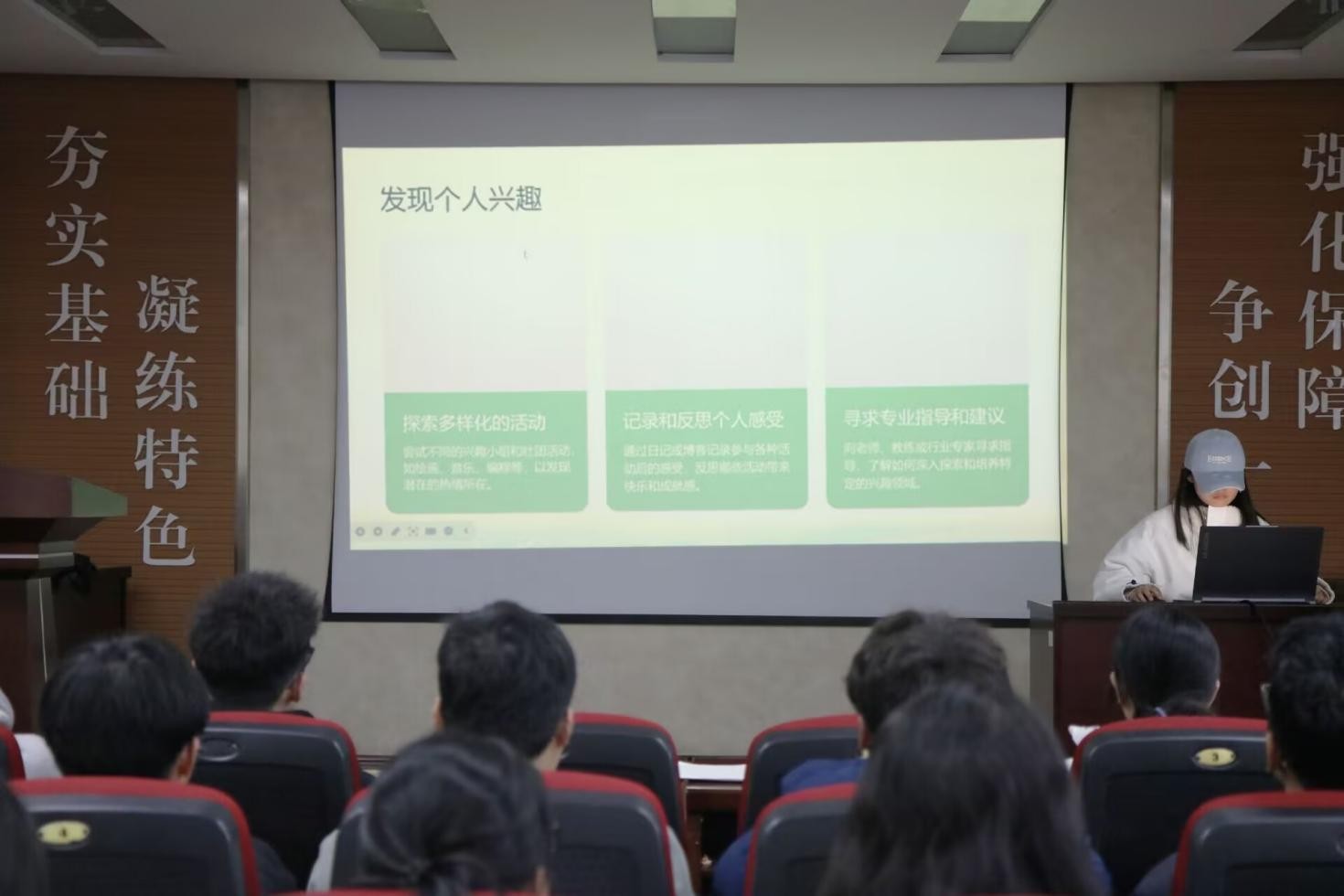 团课伊始,胡韶涵围绕对“女童”们兴趣培养、学业辅导、梦想塑造与实现路径展开讲解,提出通过参与绘画、游戏等多元活动发现孩子们的兴趣,深化兴趣探索,同时强调梦想对“女童”们成长的引领作用。随后志愿者刘梦瑶分享了制定阶段目标、坚持实践等实现梦想的具体方法,结合真实案例让内容更具感染力。与会同学认真聆听、详细记录,在互动环节积极交流,现场氛围热烈。