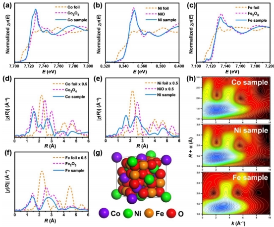 图1 (a)材料合成机理图;(b)SEM图;(c)TEM图;(d)HRTEM图;(e)EDS-mapping图;(f-h)XPS谱图。