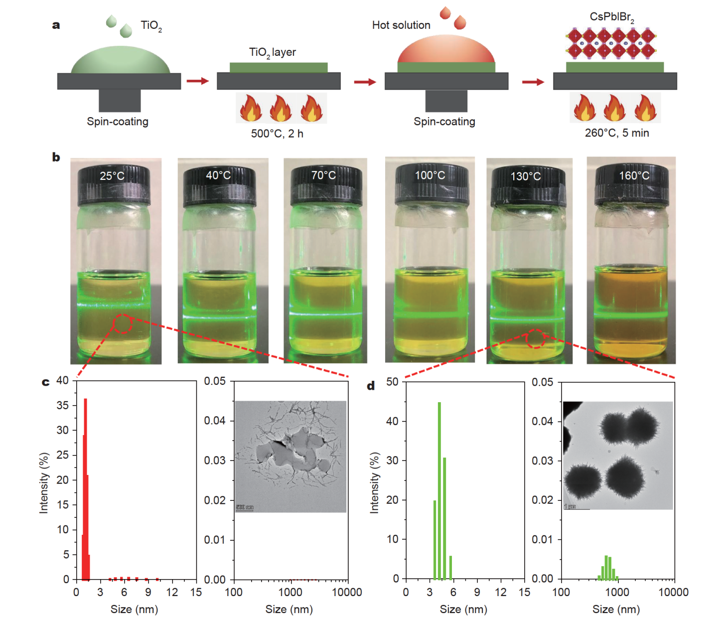 该工作通过调控钙钛矿前驱体溶液的温度大幅改善了钙钛矿薄膜质量。系统表征和测试表明,与常温钙钛矿前驱体溶液不同,钙钛矿前驱体溶液在高温条件下会产生尺寸约为一微米以上的稳定微晶,能够促进钙钛矿中间相的自发成核并实现薄膜的择优生长。薄膜质量优化后,由于缺陷态减少和晶粒尺寸增加,光生电荷能够快速地在大晶粒内部传输,降低晶粒内部的非辐射复合以及辐射复合,将电池效率提升至11.12%,明显高于未优化器件的8.51%。尤为重要的是,优化器件表现出非常优异的空气稳定性和高温稳定性。