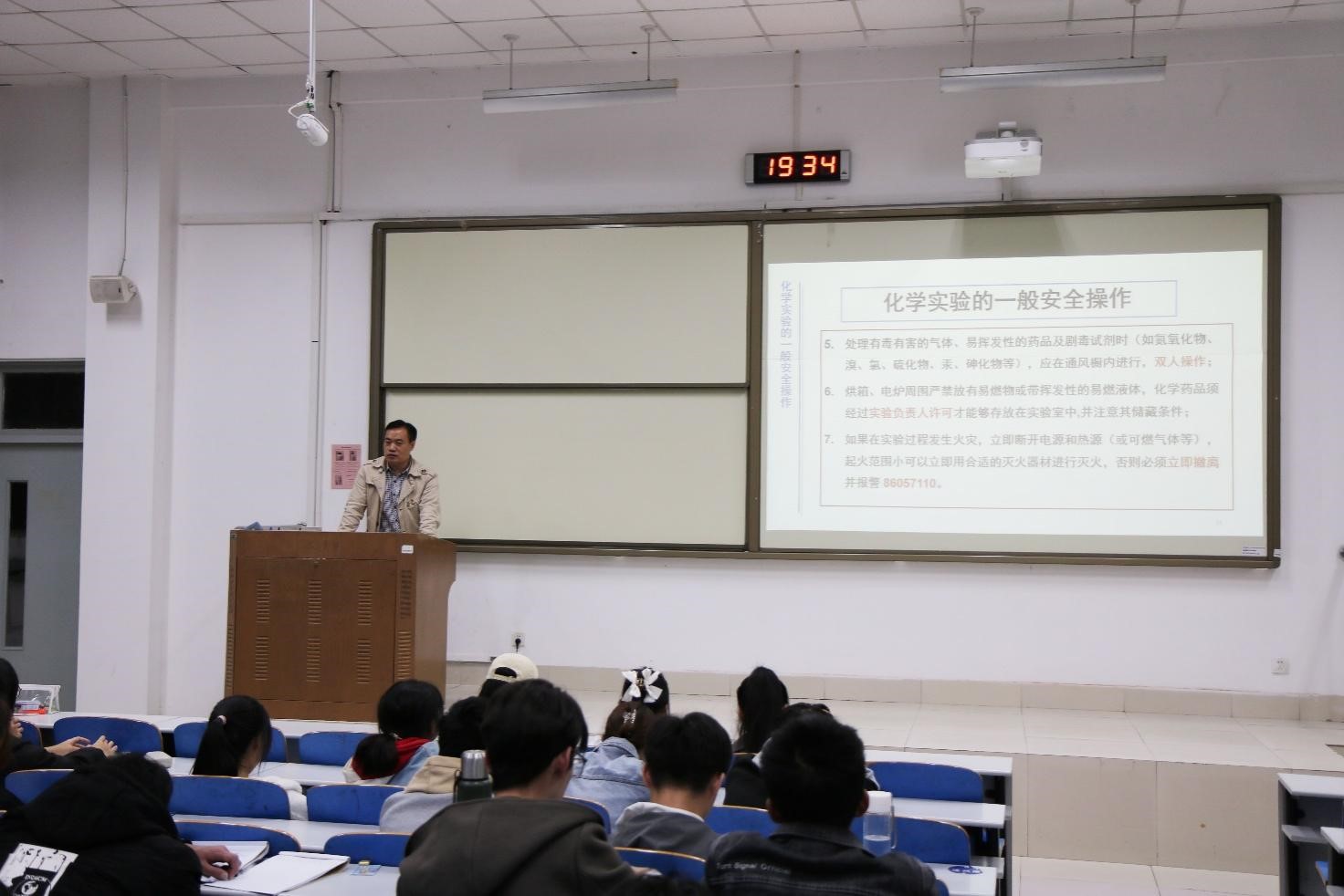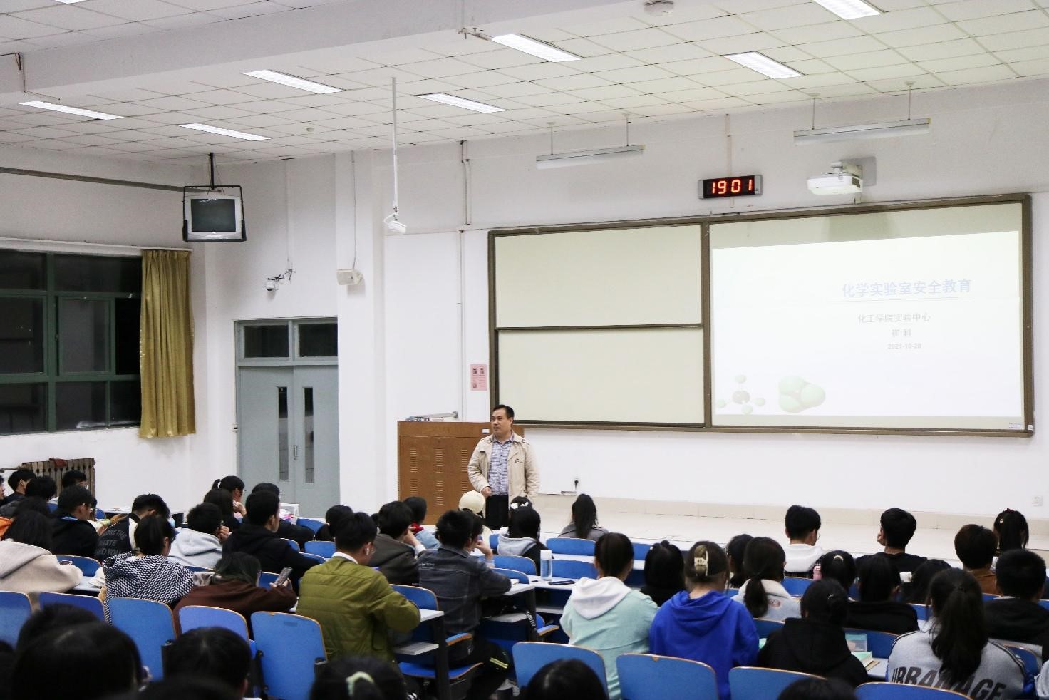为进一步加强新生的实验室安全意识,有效防范实验室安全事故,提高实验室人员安全意识和处理突发问题的能力,确保校园安全稳定,10月28日晚,公司举办以化学实验室安全为主题的安全教育讲座,公司实验中心崔科老师担任主讲,全体2021级新生到场聆听。